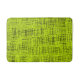 An abstract design in black and charcoal grey adorns a chartreuse background on this trendy bath mat.