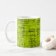 This mug feature an abstract pattern on a chartreuse background.