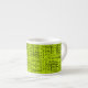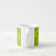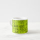 This espresso cup features an abstract pattern on a chartreuse background.