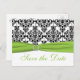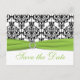 Chartreuse, White, Black Damask Save the Date Card