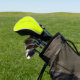 Golf Head Cover with bright yellow solid colour background and hand lettered look , grey font Elegant and trendy design by Alma Wad .Personalise it with your name now . Designer's Tip : The name comes in hand lettered script with swashes. When you are personalising it put your name between those symbols .