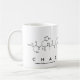 Chas spelled out in amino acids as C H A S (Cysteine Histidine Alanine Serine) on a mug for the scientist in you.