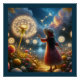 Step into a magical twilight world where wonder meets whimsy. This enchanting illustration features a young girl in a red gingham dress reaching towards glowing dandelions and fluttering light butterflies under a star-kissed sky. Framed in a carved wood-style border, the scene radiates hope, curiosity, and the beauty of chasing dreams. Perfect for children’s rooms, whimsical nurseries, or anyone who needs a gentle reminder to “Chase the Light.”
