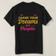 This vibrant t-shirt features a bold, abstract design with the inspiring message "Chase Your Dreams, Not People." The text is written in a multi-coloured font, creating a visually striking and uplifting statement. The design encourages individuals to pursue their passions and ambitions, rather than focusing on chasing others.