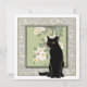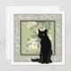 Poised against an apple blossom bough is a handsome black cat with golden eyes surrounded by an ornate Art Nouveau frame. Artist, Margaret Loftin Whiting.