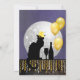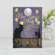 A silhouette of Théophile Steinlen's black cat for the Le Chat Noir club in a modern setting for New Years featuring a cat in a gold top hat with champagne, gold balloons, and a disco ball."