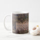 A photograph of the stunning Chatsworth House and gardens in Derbyshire, England is featured on this white ceramic mug.