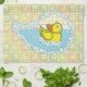 Chaucer the yellow rubber ducky floats among the bubbles in a bathtub, waiting for his next adventure.