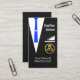 Card features a creative chauffeur's black jacket-suit coat. The business name "Chauffeur Services" which you can change is over at the top of the card. Just underneath the breast pocket lies a gold chauffeur's logo you can use. Contact details are near the base of the card.