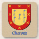 Hispanic surname Chaves family shield set of Coasters on a parchment style background.