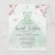 Blush Pink Floral Butterfly Princess Emerald Green Gown Dress Watercolor 16th Birthday Sweet Sixteen Invitation