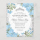 Cheap Floral Dusty Blue Silver Quinceañera Invite Flyer