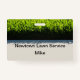 Professionally designed lawn care service employee name badges in a two side design with image of perfect lawn in the background and text space you can customize online in a budget friendly design.
