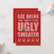 This holiday season, make your party stand out with our unique Tacky Christmas party invitations! They feature a vibrant red knitted background, charming reindeers, delicate snowflakes, and a festive Christmas tree along with the jovial message - 'EAT, DRINK AND WEAR YOUR UGLY SWEATER.' All party details are conveniently printed on the reverse. A fun and quirky way to get your guests in the holiday spirit!