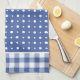 A very stylish Kitchen Towel or Tea Towel in fashionable dark (Monaco) blue with white polka dots and check gingham.