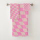 Check Pattern Peach And Pink Preppy Chequerboard Bath Towel Set