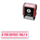 This eye-catching rubber stamp design features the message "FOR DEPOSIT ONLY". It might perhaps be used by a small business owner, an office clerk or an office clerical worker to quickly add a restrictive endorsement to a cheque.