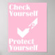 This is a poster to encourage women to check themselves monthly to prevent breast cancer.