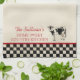 Black and white with red accents country primitive style personalised kitchen towels. Note that towel design has been intentionally distressed to make it look used and dirty. Personalise all text as you desire. Click "customise" to resize text or change font styles.