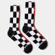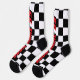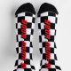 Checkered flag car racing sport personalized Socks. Personalize with your own unique name, funny quote or monogram letters. Unique Birthday gift idea for race car enthusiasts. Dynamic auto race typography with black and white squares pattern. Cool automotive socks for men.