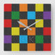 Checkered Pattern Fashion Rainbow LGBTQ Monogram Square Wall Clock