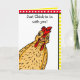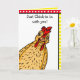 Funny chicken puns, just chick-in in on you. Funny hand drawn cartoon chicken close up and egg basket just saying hi and miss you card.