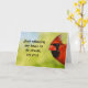 Everyone loves cardinals, AKA red birds, right? So what better card to send someone you are concerned about than one full of the vibrant color of a red bird? This beautiful cardinal appears to be "looking in" from the right side of the card, with his eyes looking into the recipient's face. He has a curious pose, which is perfect for text that indicates concern. The text on both the front and inside of the card can be customized to your individual needs.