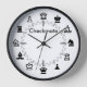 An elegant and simple chess inspired wall clock with graphic chess pieces representing the hour markers and chequered pattern indicating the minutes on a clean white background. The customisable text makes this time piece a great personalised gift idea for the chess playing enthusiast.