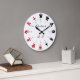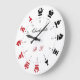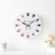 An elegant and simple chess inspired wall clock featuring red and black graphic chess pieces with hour and minute indicators on a clean white background. The customisable text makes this time piece a great personalised gift idea for the chess playing enthusiast.
