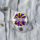 This button pin is shown here with a cheer dad pom print.