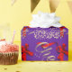 Pretty purple Cheer Christmas wrapping paper. Complimented with a red bow and Gold glitter.