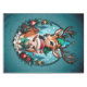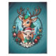 Cheerful and inviting Christmas illustration with a cartoon deer and a lamb, surrounded by a harmonious blue-green background that creates a wintery atmosphere. The deer stands protectively behind the lamb, who is dressed in a cosy green sweater and has a bright red Santa hat on his head. Both radiate joy and friendship, their big, expressive eyes sparkling with enthusiasm. The lamb looks out into the world curiously and happily, while the deer reinforces his presence with a gentle smile and draws the viewer into the festive spirit.