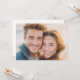 This invitation features a joyful beach scene with two individuals smiling and standing close together, capturing the essence of a carefree day by the ocean. The design showcases a soft colour palette of blues and beiges, blending seamlessly with their neutral clothing to create a harmonious and inviting atmosphere. With its realistic depiction and cheerful mood, this template is perfect for celebrating special occasions like weddings or anniversaries in a serene coastal setting.