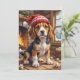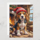 Cheerful Beagle Puppy in Stocking Cap Cozy Holiday Card