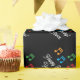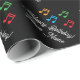 Cheerful Birthday wrapping paper with music notes. Custom gift wrap roll with personalised Happy Birthday text. Cute template design for men women and kids (boys and girls) who love music, making music or playing musical instruments. Customisable black background colour. Elegant wrapping paper for music teacher, piano player, singer, entertainer, artist, vocalist, pianist, kids, student etc. Also great for Christmas holidays.