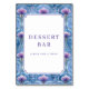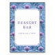 This elegant wedding tabletop sign features a symmetrical layout with a central white space framed by intricate floral patterns in shades of blue and purple. The design showcases stylised flowers resembling tulips or peonies, arranged in a harmonious border that adds depth and sophistication. Bold serif typography announces "DESSERT BAR" while inviting guests to indulge with the phrase "PLEASE TAKE A TREAT!" The overall mood is cheerful and inviting, perfect for enhancing the festive atmosphere at your celebration.