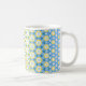 This cheerful mug features a bright progressive pattern in blue, yellow, and green. The lively patterns colours wrap around the mug, giving you interesting motifs to ponder with your beverage.