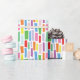 This pattern of broken rectangles feels like a tile mosaic in bright and happy colors of grass green, lilac purple, citron yellow, coral red, light peach, shell pink, rose, orange and pale aqua blue. This pattern is a great generic choice for any sort of gifting occasion from birthdays to babies and it will appeal to a large number of people and occasions.