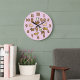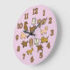 Beautiful lavender wall clock for dog lovers. This fun home accent is decorated with various whimsical cartoon illustrations of dogs. The design includes big bold numerals for each hour. Great housewarming gift for a dog loving family or a dog owner.