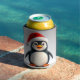 Cheerful Cartoon Penguin Wearing Santa Hat Can Cooler
