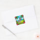 Cheerful Cartoon Zebra in a Tropical Landscape Square Sticker