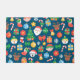 Cheerful Christmas Pattern on Blue Doormat