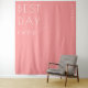 This wedding backdrop features a minimalist design with a soft coral pink background, creating a warm and inviting atmosphere. The phrase "BEST DAY ever" is prominently displayed in a mix of bold sans-serif and elegant cursive typography, adding a touch of modernity and whimsy to the layout. The simple yet sophisticated style conveys a cheerful and optimistic mood, perfect for celebrating your special day. Its understated elegance makes it an ideal choice for couples looking to add a romantic flair to their wedding decor.