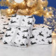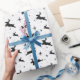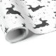 This charming wrapping paper features joyful leaping deer, silhouetted against a crisp white background dotted with whimsical stars. Ideal for adding a festive touch to holiday presents, it embodies the spirit of Christmas.