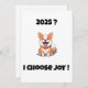 Bring positivity and joy into the new year with this uplifting dog lover gift! Featuring a cheerful dog and the positive message "2025? I CHOOSE JOY" this design is perfect for anyone who embraces optimism and loves dogs. Ideal for dog owners or anyone who enjoys funny dog gifts, this design will brighten their day and set the tone for a joyful 2025.