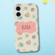 This adorable personalised phone case features doodles of simple hearts, dots, and wavy lines painted with soft pastel watercolors in blush pink, mint green, lavender, and pale yellow.