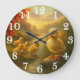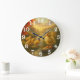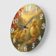Whimsical nature clock depicts a mother duck standing on a rock with four ducklings in a sparkling stream, surrounded by lush grass and red autumn leaves. White numerals on warm-toned backdrop create cosy seasonal charm—perfect for nursery decor or nature lover gifts.