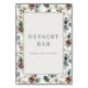 This elegant table number features a charming dessert bar sign surrounded by a delicate floral border with muted green and beige tones. The design showcases intricate illustrations of leaves, berries, and pinecones, creating a cosy and inviting atmosphere perfect for weddings or parties. The clean typography in the centre highlights the phrase "Dessert Bar" in an easy-to-read serif font, encouraging guests to indulge in sweet treats. The overall style is sophisticated yet approachable, making it ideal for enhancing any event's ambiance.