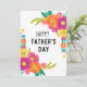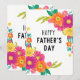 This Father's Day card showcases a vibrant and cheerful floral arrangement in each corner, featuring pink, orange, and yellow blossoms complemented by green leaves. The "HAPPY FATHER'S DAY" message is prominently displayed in a contemporary font. This card provides a joyful and heartfelt way to celebrate the occasion, available for convenient download and printing.
