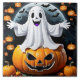 Cheerful ghost among pumpkins on Halloween night Ceramic Tile
